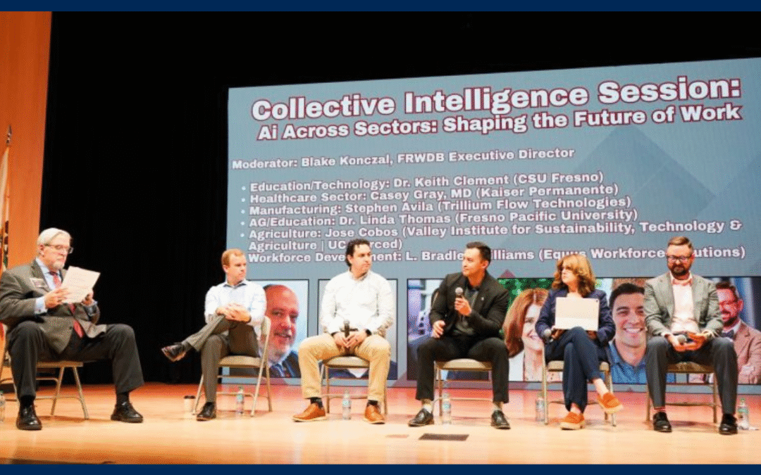 Jose Cobos, VISTA F3 Industry Relations Coordinator, represented VISTA and UC Merced on the “AI Across Sectors: Shaping the Future of Work” panel hosted by the Fresno Regional Workforce Development Board. Joined by colleagues from health, manufacturing (Stephen Avila), and ag education (Linda Thomas, Ed.D.), he discussed the mindset shifts and digital literacy skills needed for tomorrow’s workforce.